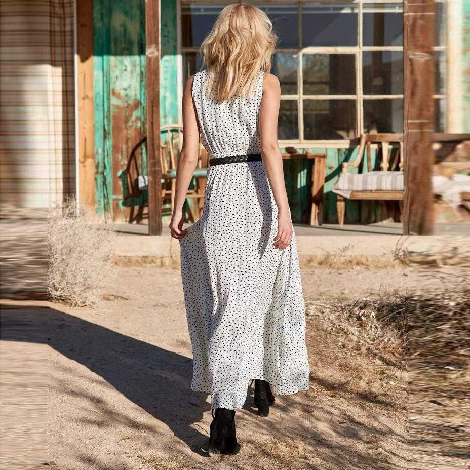 Vintage Plunge Casual Polka Dot Maxi Dress Long quantity